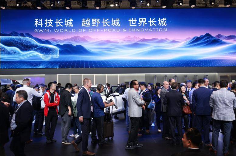 車展現(xiàn)場(chǎng),長(zhǎng)城汽車展臺(tái)有大量外國(guó)友人觀展與洽談,成為一道特別的風(fēng)景。