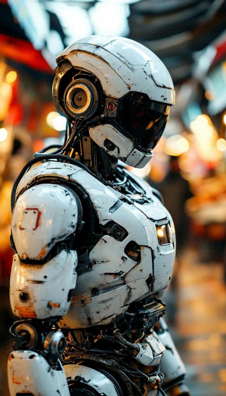 周圍的人們還在熱情地交談、買賣,市場的喧鬧聲此起彼伏。機器人站在那里,似乎變得越來越靜止,像一尊等待命令的雕塑。它的“感官”不斷被那股香味刺激,身體微微前傾,似乎下一秒就會伸出機械手去抓取那塊大腰子。