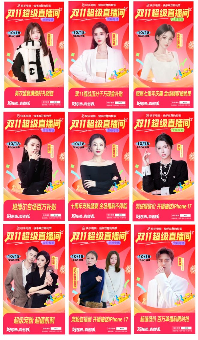 10月18日至19日,快手達(dá)人主播@CC大彤彤、@周周珍可愛(ài)、@偉偉高端嚴(yán)選、@白小白、@超級(jí)丹、@北京胖姐姐、@安九、@小冠軍、@ViVi歐韓原創(chuàng)服飾、@趙夢(mèng)澈、@Lulu Studio8將開(kāi)啟超級(jí)寵粉專場(chǎng)和超級(jí)上新專場(chǎng),不僅有新品、低價(jià)爆款,還有滿額贈(zèng)禮、直播間抽送iPhone 17等驚喜放送,寵粉不停。