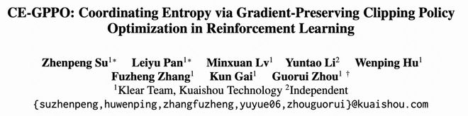 然而,這一階段的訓練并非穩態過程。業界在大規模 RLVR 實踐中普遍發現,模型熵的失衡,即探索與利用的不協調,是導致模型訓練不穩定、性能難以提升的核心原因。針對這一長期瓶頸,快手 Klear 團隊提出了一種新的強化學習算法 CE-GPPO(Coordinating Entropy via Gradient-Preserving Policy Optimization),該方法以「熵」為核心視角,重新審視 RL 中梯度裁剪機制的本質影響,并對應地提出了梯度保留策略,在保證訓練穩定的前提下,納入裁剪區間外的梯度使模型能夠在訓練過程中達到探索與收斂的平衡。