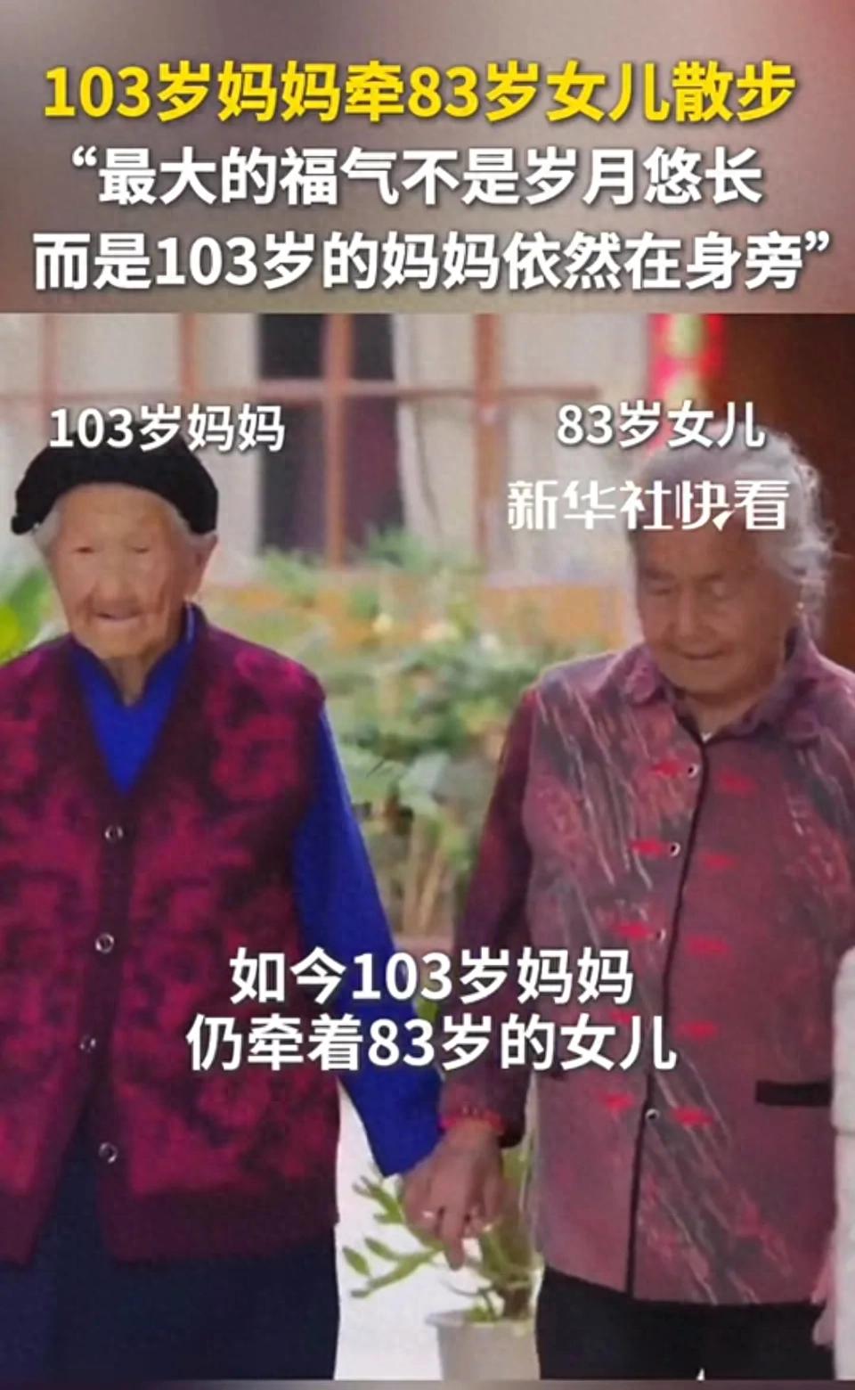 咱普通人總說“歲月悠長是福氣”,但看了這對母女,才明白真正的福氣是啥——是哪怕你已經(jīng)83歲了,一回頭,103歲的媽媽還在你身邊當(dāng)你的“靠山”。