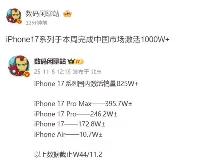 根據數據顯示,iPhone17系列在中國激活量已經超過1000萬臺,要知道,這手機正式開賣還不到兩個月。