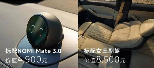 內(nèi)飾方面,新車(chē)搭載15.6英寸AMOLED中控屏、19.4英寸W-HUD抬頭顯示、50W風(fēng)冷雙無(wú)線充電板,車(chē)機(jī)系統(tǒng)升級(jí)為NOMI Mate 3.0,頭枕位置增加了品牌LOGO刺繡,另外還提供女王副駕以及氛圍套裝。