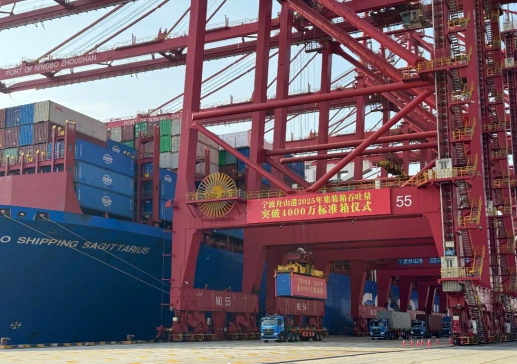12月2日上午,寧波舟山港梅山港區(qū)傳來重磅消息——隨著第4000萬只標(biāo)準(zhǔn)集裝箱穩(wěn)穩(wěn)吊上“中遠(yuǎn)海運(yùn)人馬座”輪,這座全球第一大港首次邁入“4000萬標(biāo)箱俱樂部”,成為全球第三個(gè)達(dá)成此成就的港口。